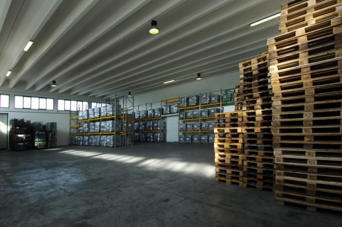 Magazzino assicurato, accessi controllati e procedure di carico/scarico strutturate per la tracciabilità.